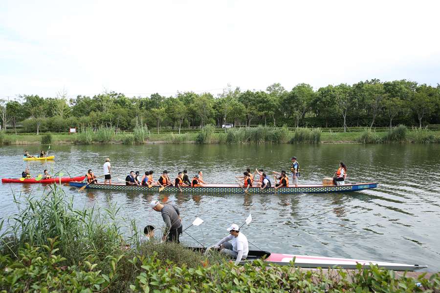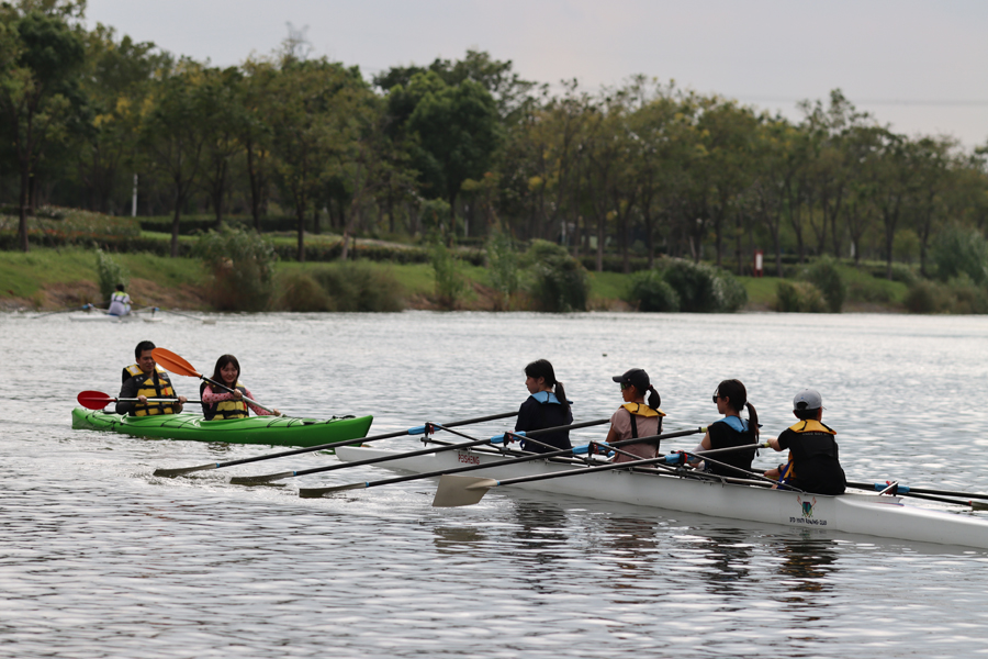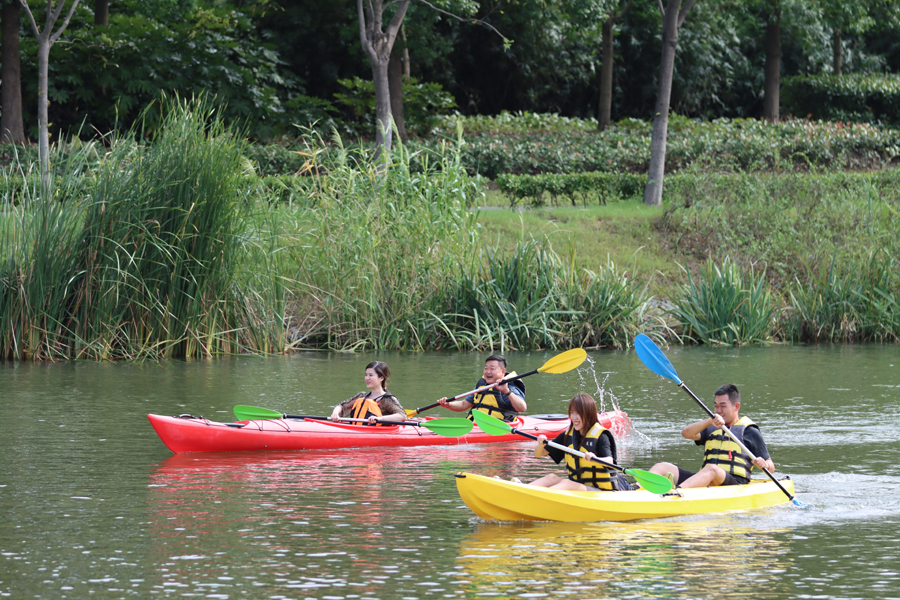 水上運動中心河道長達數(shù)千米,寬闊的河面可舉辦多項船艇賽事,河水清澈見底、航道標志豎立;兩岸芳草樹蔭、藍天清新鳥鳴;百條皮艇、龍舟、劃艇、漿板等船艇靜靜的整齊排列。
