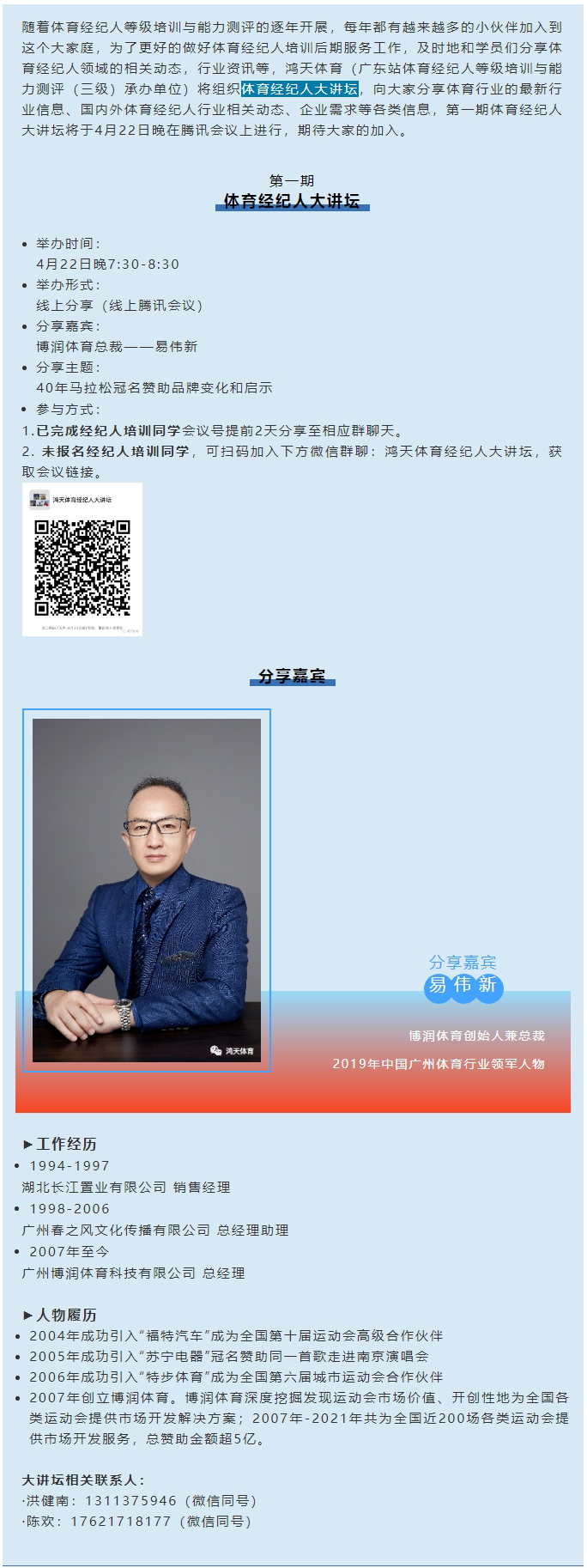 4月22日正式開講|體育經(jīng)紀(jì)人大講壇在線等你哦