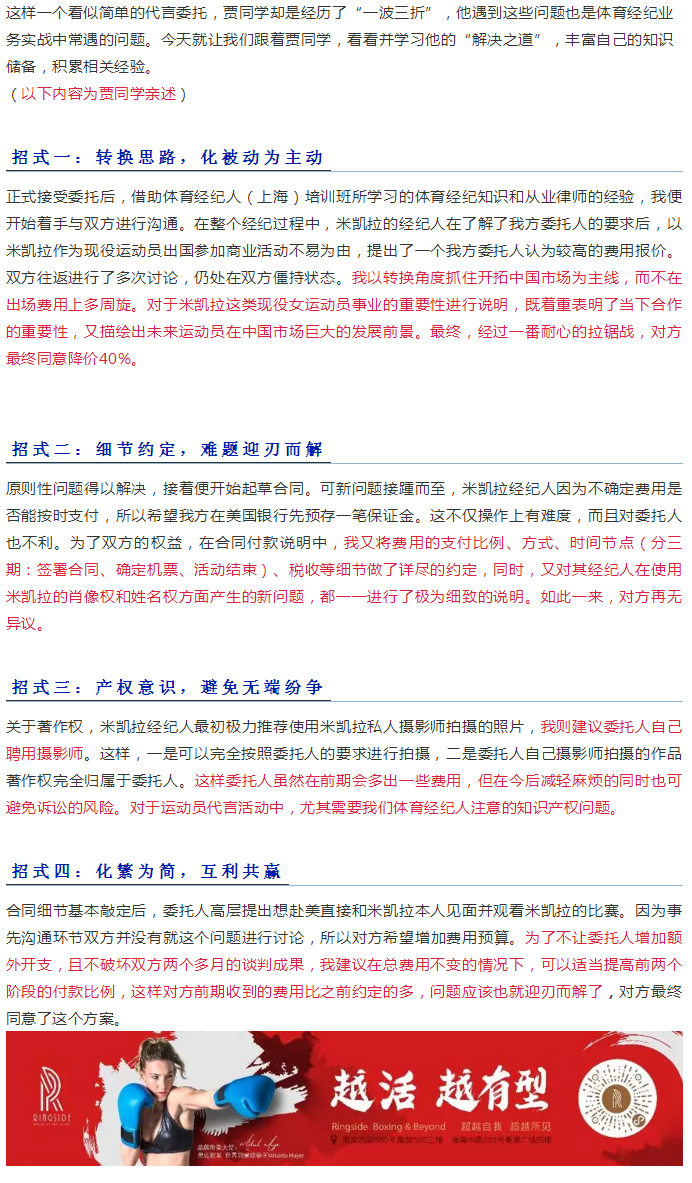 實戰(zhàn)分享 | 學(xué)以致用,搞定體育經(jīng)紀(jì)中的“一波三折”