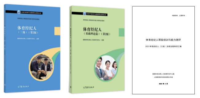 選用國(guó)家體育總局人力資源開發(fā)中心指定培訓(xùn)教材:《體育經(jīng)紀(jì)人(三級(jí))》、《體育經(jīng)紀(jì)人(基礎(chǔ)理論篇)》、《2024年體育經(jīng)紀(jì)人(三級(jí))法律法規(guī)知識(shí)匯編》(電子版)。培訓(xùn)期間定期開展模擬測(cè)評(píng),同時(shí)結(jié)合案例分析,重點(diǎn)突出體育經(jīng)紀(jì)實(shí)踐性。